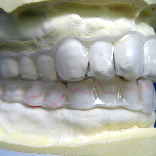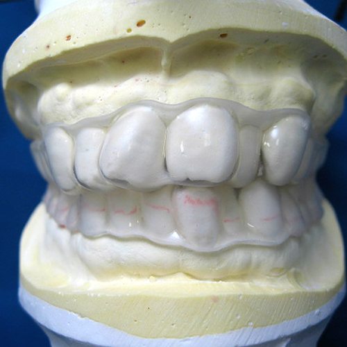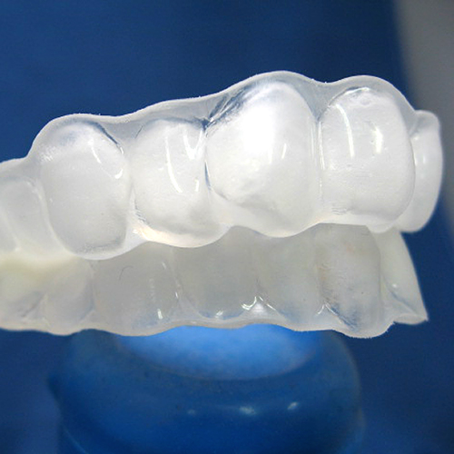 主に就寝中に使われる咬合床、ブラキシズムの激しい人や睡眠時無呼吸症候群の歯科的な治療器具である。下顎を前進させた状態を固定することにより、上気道の閉塞を防ぐ効果があります。
