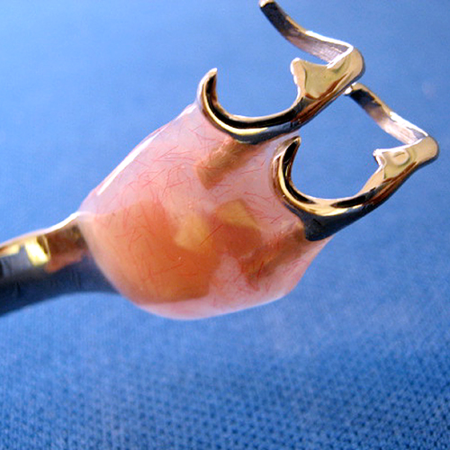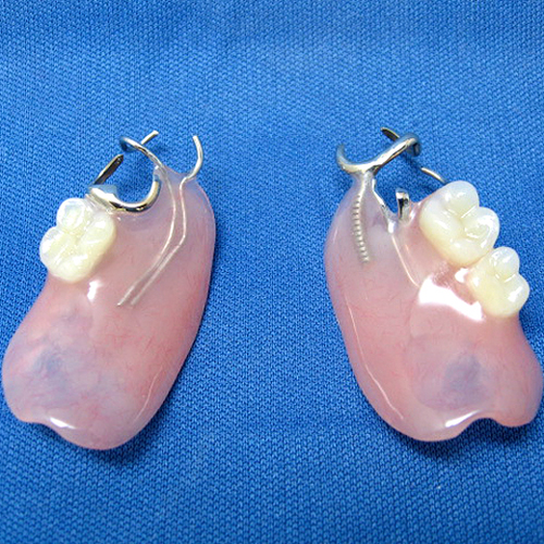 残存歯に屈曲ワイヤーで維持を求め、鉤歯への負担を軽減することができます。比較的、調整が容易におこなえ、審美的ではあるが維持力が弱いです。