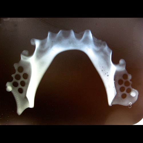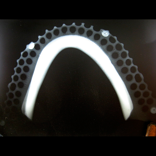 メタルフレーム(純チタン・コバルトクロムなど)作製時に発生しやすい鋳巣および鋳造欠陥をエックス線撮影し、フィルム上にて検査・確認をしております。